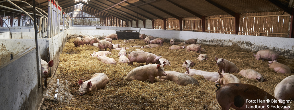 Økologiske slagtegrise holdes ofte i stalde, hvor de har god plads og rodemateriale som f.eks. halm.